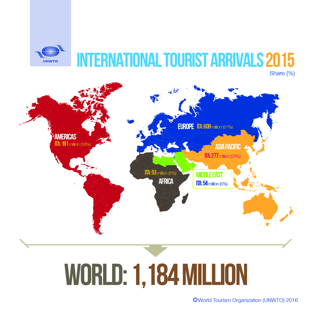 International tourist arrivals grew by 4.4% in 2015 to reach a total of 1,184 million in 2015, according to the latest UNWTO World Tourism Barometer. Some 50 million more tourists (overnight visitors) travelled to international destinations around the world last year as compared to 2014.